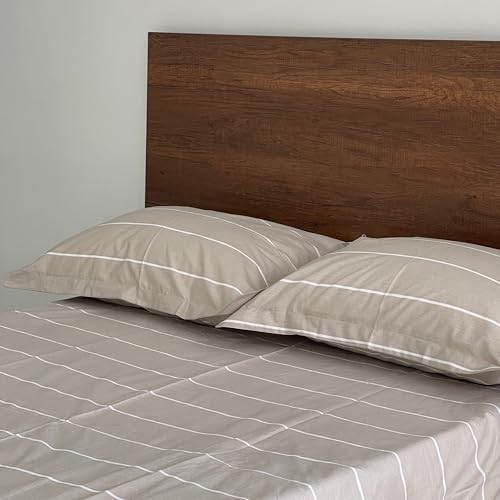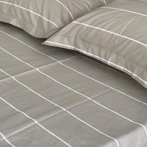 MonyHome - ملاءة سرير مسطحة مقاس كوين مطبع من موني هوم، بيج، 2.4 × 2.2 م
