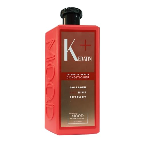 Mood - سائل من مود للشعر التالف 400 مليلتر، مغذي للشعر بالكيراتين والكولاجين ومستخلصات الأرز، خالي من السلفات ومعزز بالكيراتين