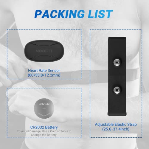 moofit - حزام صدر HR8 لمراقبة بيانات معدل ضربات القلب في الوقت الحقيقي منخفضة الطاقة بلوتوث 5.0/ANT+، نطاق اتصال طويل، مقاوم للماء IP67، متوافق مع تطبيقات iOS/أندرويد ومعدات الجيم من موفيت، أسود