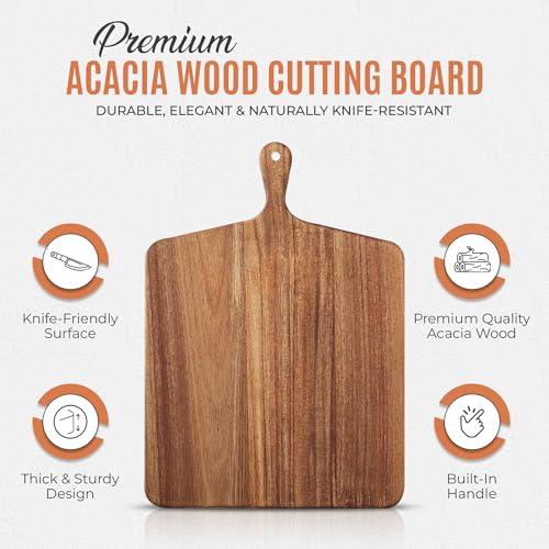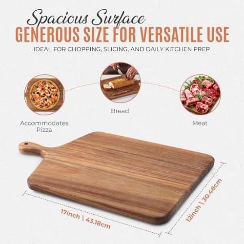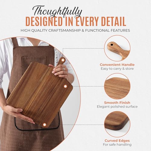 MOOKOMI - لوح تقطيع من خشب الاكاسيا بمقبض من موكومي - الواح تقطيع خشبية متينة للمطبخ، مثالية للخبز وتقطيع اللحوم الباردة واعداد الطعام، 43 سم × 30.5 سم .