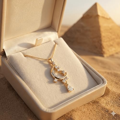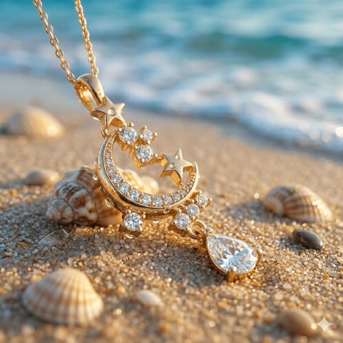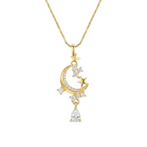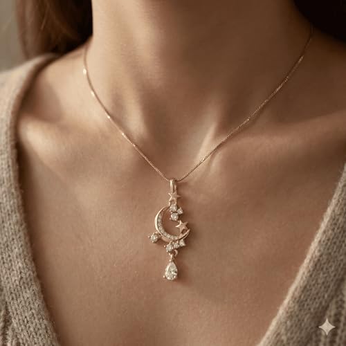 Generic - سلسلة "القمر والنجوم" الساحرة مع كريستال متدلي | مجوهرات سماوية مرصعة بالزركون النقي | هدية مثالية للنساء والفتيات بتصميم عصري | من الاستانلس ستيل المقاوم للصدأ