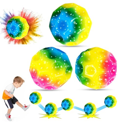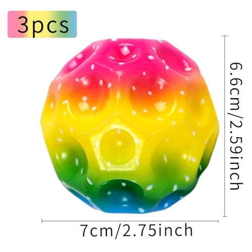 Seasboes - عبوة من 3 كرات قفز استرو، كرة فضاء، لعبة كرة قفز 7 سم،كرات نطاطة بتصميم الكوكب، كرة مطاطية عالية القفز، كرة قمر، كرات نطاطة على شكل كوكب للرمي،مناسبة كهدايا الحفلات للاطفال