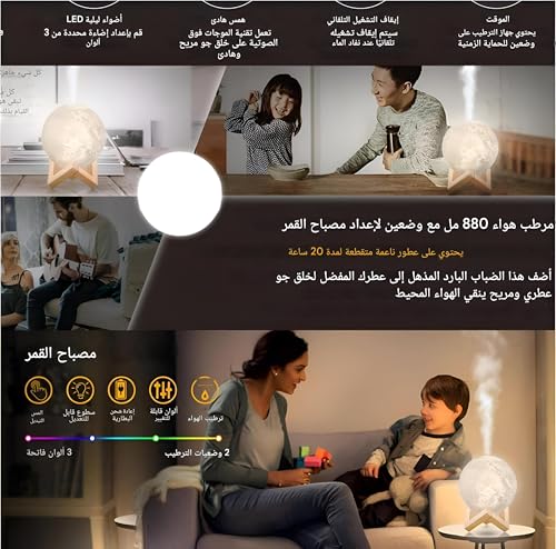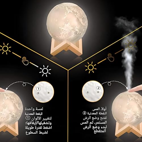 - ★أفضل الهدايا: تم تصميم هذا المرطب على شكل قمر خشبي ثلاثي الأبعاد، وهو يخدم أغراضًا عملية وزخرفية. إنه خيار هدية ممتاز للأصدقاء والأطفال وأفراد العائلة في المناسبات مثل الكريسماس أو العطلات أو حفلات أعياد الميلاد أو حفلات الزفاف أو الذكرى السنوية. يضيف تصميمه الفريد كضوء ليلي سحرًا إلى أي غرفة، سواء كانت غرفة معيشة أو طاولة طعام أو مقهى.