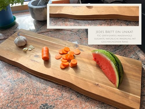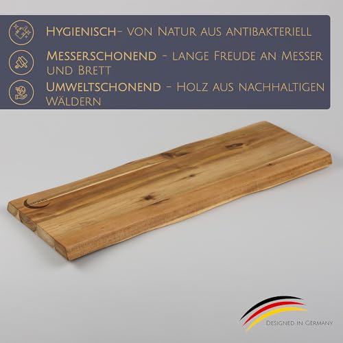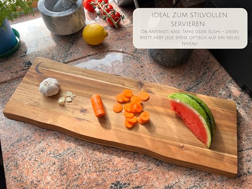 MOON KITCHEN HOME - لوح تقطيع من مون هوم - لونغ مارز، لوح تقديم عالي الجودة مصنوع من خشب الاكاسيا/الخشب، لوح خشبي ريفي مثالي للتقديم الانيق، مضاد للبكتيريا وصحي بشكل طبيعي، 53 × 13 × 2 سم