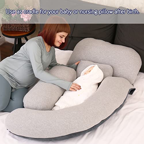 MOON PINE - مخدة حمل مقاس 60 بوصة من مون بيني، نوم كبيرة قابلة للفصل على شكل حرف U للنساء الحوامل مع غطاء قابل للازالة (جيرسي - رمادي)، قماش جورسيه