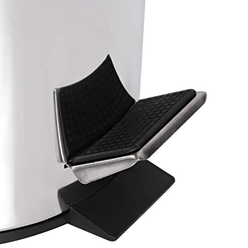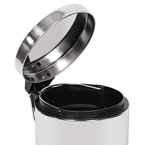 - ستانلس ستيل ثقيل الحجم - مصمم ليدوم طويلاً من مواد قوية، يمكنك استخدام سلة المهملات هذه في أي غرفة مثل الحمام أو غرفة النوم أو غرفة الملابس أو المكتب أو الشرفة أو المطبخ أو الحديقة في أي مكان، فقط عن طريق الضغط بلطف على الدواسة التي تفتح بسلاسة فائقة حتى تتمكن من رمي النفايات بداخلها بسهولة دون لمسها. يوجد مقبض على الدلو بالداخل لسهولة الإزالة والتنظيف وهناك أيضًا مقبض صغير على الصندوق الخارجي للرفع.