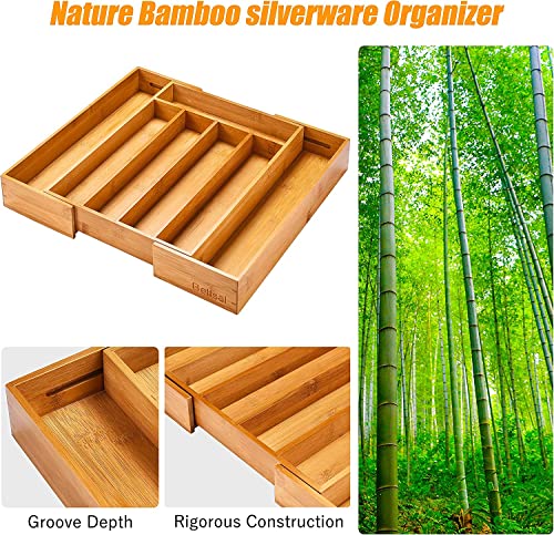 - 【تناسب درجك تمامًا】هل ما زلت تقيس كل درج مطبخ وتشتري منظم درج مطبخ بنفس الحجم؟ تم تصميم منظم أدراج الأواني الفضية المصنوع من الخيزران مع 5-7 مساحات تخزين. بفضل ميزاته القابلة للتعديل، يمكن توسيع منظم الأدراج القابل للتوسيع من 10 إلى 15 انش، وهو مثالي لأي درج مطبخ.