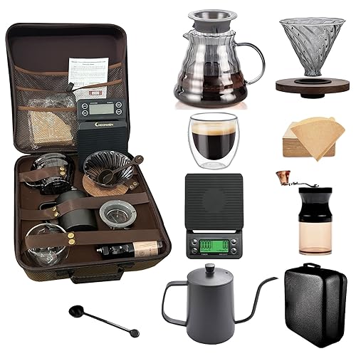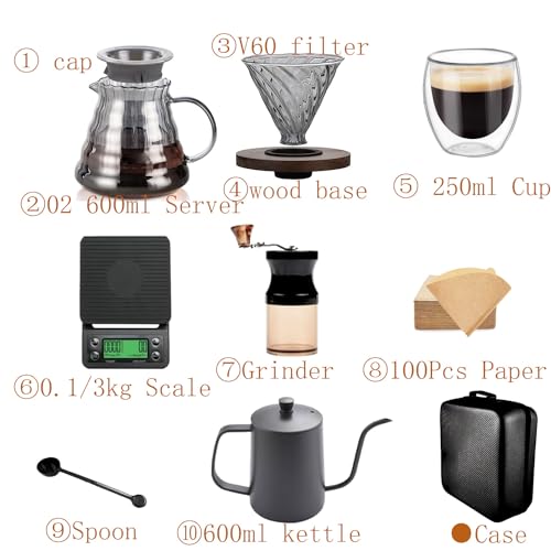 - 【هدية مثالية】مجموعة هدايا القهوة V60 هذه مثالية لمحبي القهوة المتحمسين لجودة ونكهة قهوتهم. رائعة للاستخدام أثناء التخييم أو التخييم أو التصوير الفوتوغرافي أو ببساطة في المنزل، تصميمها الأنيق يجعلها إضافة رائعة لأي مطبخ أو محطة قهوة. بالإضافة إلى ذلك، فهي هدية مدروسة لعشاق القهوة في حياتك.