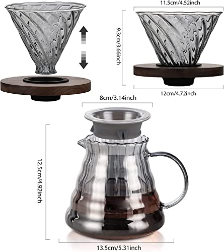 Moonmen - مون مين مجموعة منقط لماكينة تحضير القهوة في 60 وعاء تقديم قهوة زجاجي سعة 600 مل مقاس 02 V60 مع حامل خشبي ومنقط للمنزل والمكتب - رمادي ممتازة زجاج بوروسيليكات