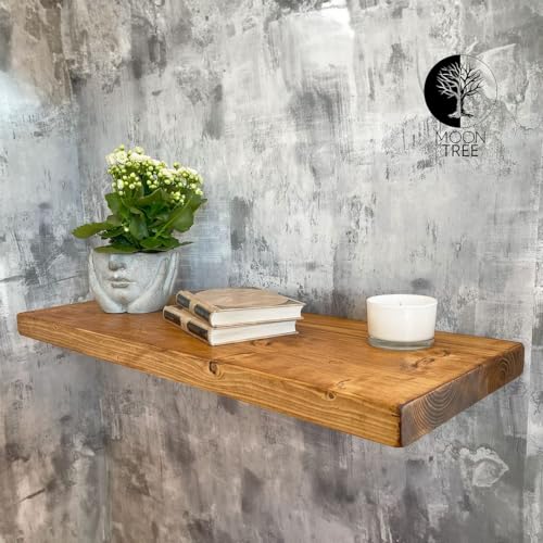 MoonTree - مونتري رف عائم ريفي، 60 سم × 30 سم × 4.2 سم، مظهر البلوط الداكن