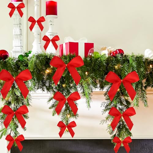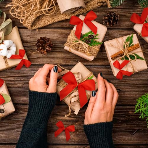 - جودة عالية: فيونكة الكريسماس مصنوعة من شريط بوليستر أحمر عالي الجودة. سطح أملس، متين، مثالي لتزيين الحرف اليدوية..