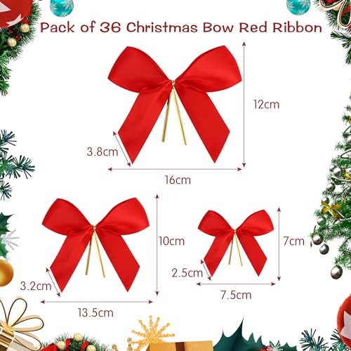Moorle - فيونكات شريطية حمراء مزينة بأربطة ذهبية للكريسماس من مورل زينة الكريسماس لتزيين شجرة وأكليل مستلزمات ديكور مجموعة 36 قطعة البوليستر