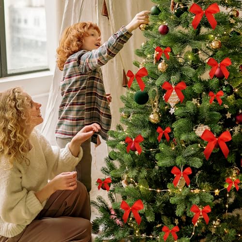 - استخدام واسع: فيونكات شجرة الكريسماس الحمراء مناسبة لتزيين أشجار الكريسماس وأكاليل الكريسماس وتزيين الزفاف وتغليف الهدايا للكريسماس. عيد ميلاد سعيد! !.