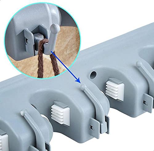 generic - حامل مكنسة الممسحة ، رف تخزين 5 أوضاع مع 6 خطافات (ضمان عام واحد)