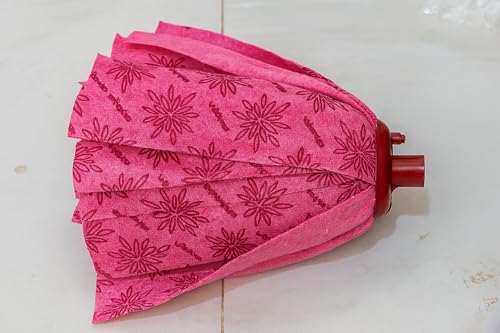 Generic - راس ممسحة موب (راس ممسحة منزلية من الألياف الصناعية – وردي مزخرف)