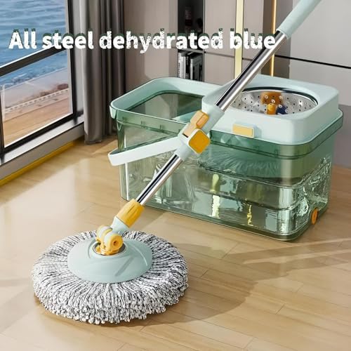 Generic - مساحة موب كبيرة وسميكة بتصميم دوار مزدوجة الدفع للتنظيف الرطب والجاف بدون مجهود، غسيل يدوي بدون مجهود، حل تنظيف كسول للمنزل وغرفة النوم والحمام والمطبخ، رأس مساحة متين ودلو حديث