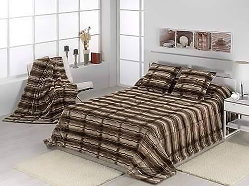 MORA - بطانية كولاري (كولاري) من مورا - C95 (بطانية فرو ثقيل)- اللون: بني (بني) - المقاس: 230 × 250 + 2 كيس وسادة (50 × 75) - 100% بوليستر مايكروفايبر الوزن الصافي 6.10 كجم - بلد المنشأ إسبانيا