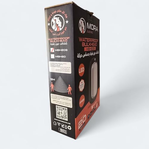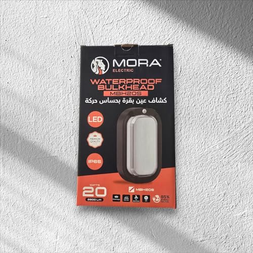 Generic - وحدة إنارة من مورا باللون الأسود للكراج والأماكن الخارجية مصنوعة من البلاستيك مضادة للماء مع مستشعر حركة وموفرة للطاقة بقوة 20 واط