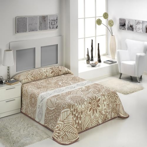 MORA - بطانية مورا جولد مطرزه (MORA Gold)- موديل: B90 - اللون : كافيه- المقاس: 220×240 سم - تتكون من 85٪ اكريليك 15٪ بوليستر - الوزن: 4.450 كجم - بلد المنشأ إسبانيا.