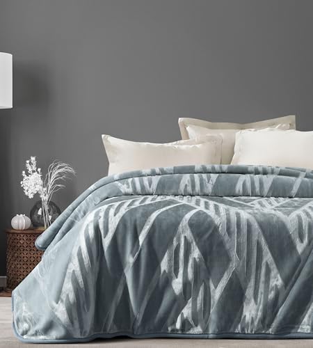 MORANO - مورانو بطانية من البوليستر بنسبة 100% بتصميم مطبوع ومنقوش على الجانب الخلفي مقاس 220 × 240 سم (فضي)