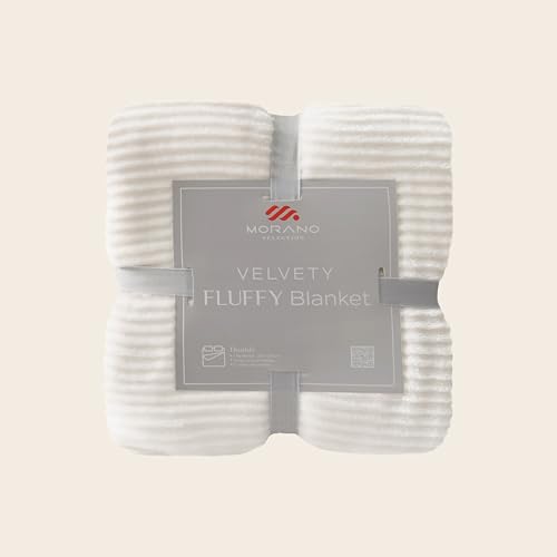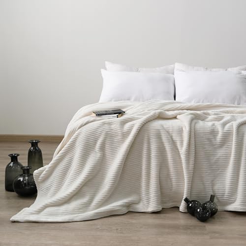 MORANO - بطانية منفوشة مصبوغة من البوليستر فائق النعومة بتأثيرات مخططة بملمس بارز وخفيفة الوزن ومريحة من مورانو، مقاس 2.2 × 2.4 م، (لون عاجي)