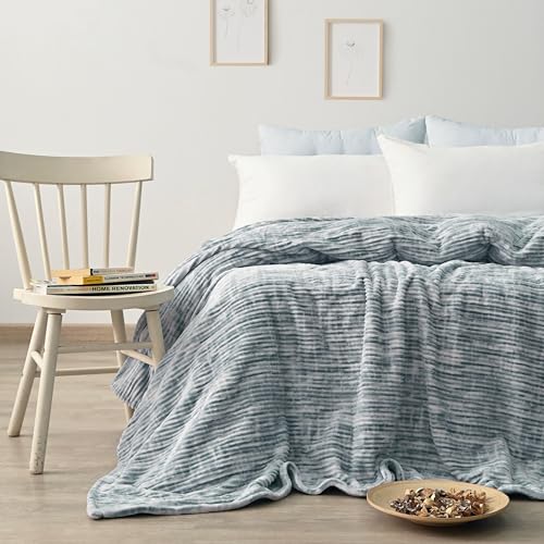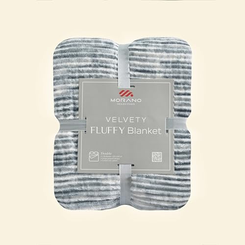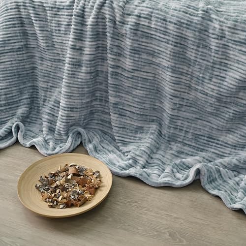 MORANO - بطانية منفوشة مطبوعة من البوليستر فائق النعومة، خفيفة الوزن ومريحة، غطاء سرير وكنب بتصميم مخطط بنسيج بارز، بطانية شتوية مريحة من الصوف، مناسبة للسرير من مورانو، 2.2 × 2.4 متر، لون أزرق (Petrol Blue)