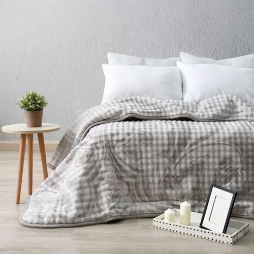 MORANO - بطانية ثقيلة ناعمة ماي تاتش من الصوف للشتاء من طبقتين ووزن 4 كيلوجرام، بطانية 100% بوليستر للراحة والدفء من مورانو، 220 × 240 متر (رمادي مائل للبني (Greige)، دمشقي)