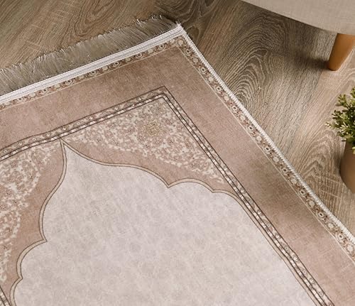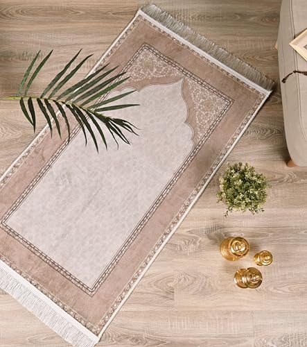 MORANO - سجادة صلاة مقام 65 سم × 1.15 متر من مورانو، سجادة صلاة ناعمة ومريحة للمنزل والمسجد والسفر (لون بني كافي)
