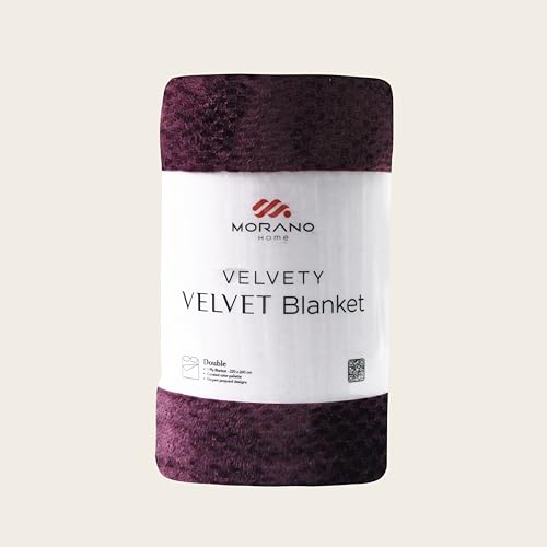 MORANO - بطانية قطيفة طراز مصبوغ من البوليستر الناعم دافئة وخفيفة الوزن للسرير أو الكنبة بألوان أنيقة لجميع ديكورات المنزل من مورانو، مقاس 2.2 × 2.4 متر (لون بورغندي)