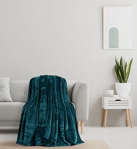 MORANO - بطانية فيفا - موديل مصبوغ، 2.2 × 2.4 م، غطاء بوليستر فائق النعومة خفيف الوزن مع لمسة نهائية أنيقة، بطانية دافئة ومريحة للسرير أو الأريكة - ألوان أنيقة لجميع الفصول (أزرق مخضر)