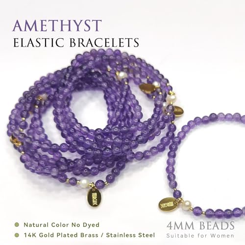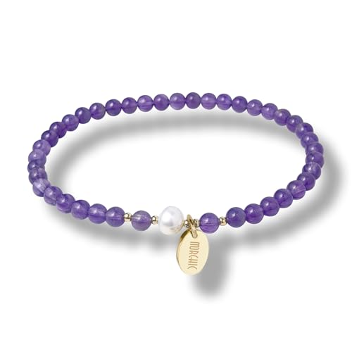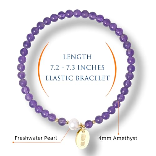 Morchic - مورشيك سوار قابل للتمدد من خرز الاحجار الكريمة الطبيعية مقاس 4 ملم للنساء والفتيات لؤلؤ المياه العذبة هدية عيد ميلاد 7.2 انش 7.2 ستانلس ستيل جمشت