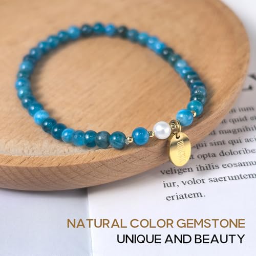 Morchic - مورشيك سوار قابل للتمدد من خرز الاحجار الكريمة الطبيعية مقاس 4 ملم للنساء والفتيات لؤلؤ المياه العذبة هدية عيد ميلاد 7.2 انش 7.2 ستانلس ستيل اباتيت