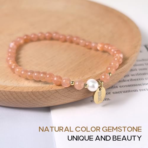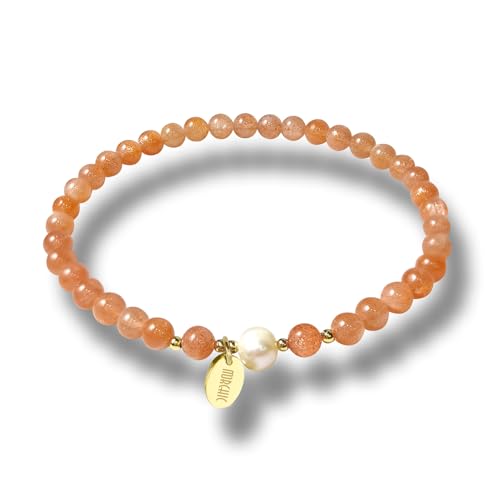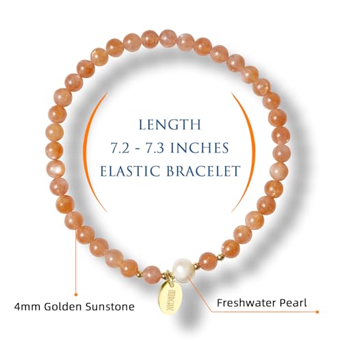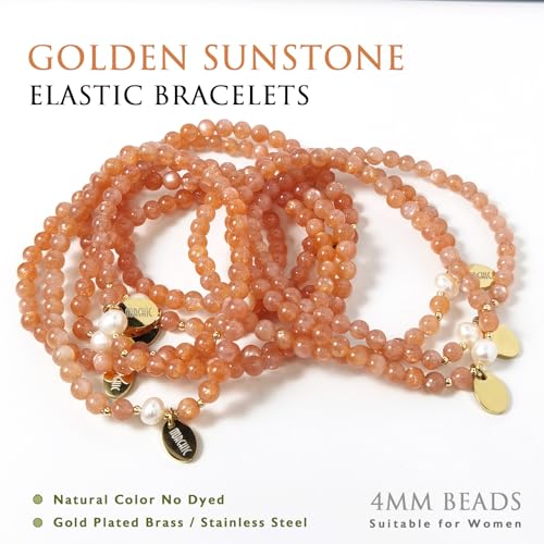 Morchic - مورشيك سوار قابل للتمدد من خرز الاحجار الكريمة الذهبية الطبيعية 4 ملم للنساء، مع لؤلؤ المياه العذبة، جوهرة الطاقة هدية عيد ميلاد لها 7.2 انش