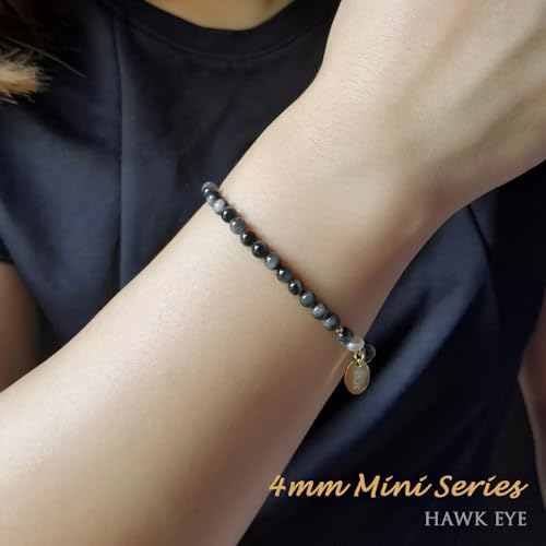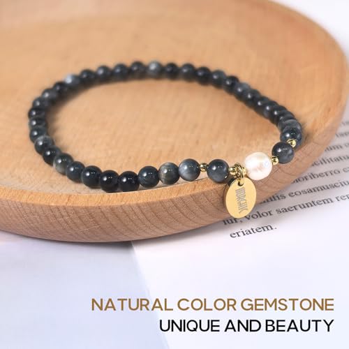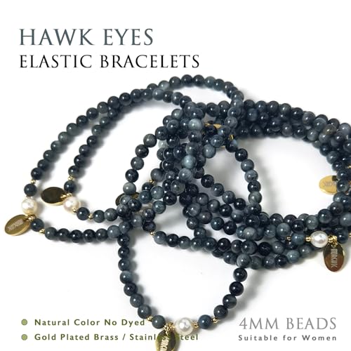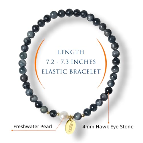 Morchic - مورشيك سوار قابل للتمدد من خرز عين الصقر الطبيعي مقاس 4 ملم للنساء والفتيات، مع لؤلؤ المياه العذبة، هدية عيد ميلاد لها 7.2 انش