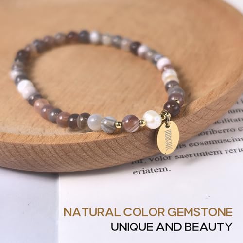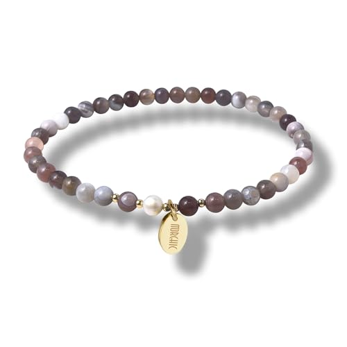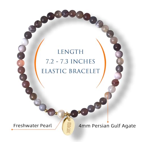 Morchic - مورشيك سوار قابل للتمدد من خرز الاحجار الكريمة الطبيعية مقاس 4 ملم للنساء والفتيات لؤلؤ المياه العذبة هدية عيد ميلاد 7.2 انش 7.2 ستانلس ستيل عقيق الخليج الفارسي