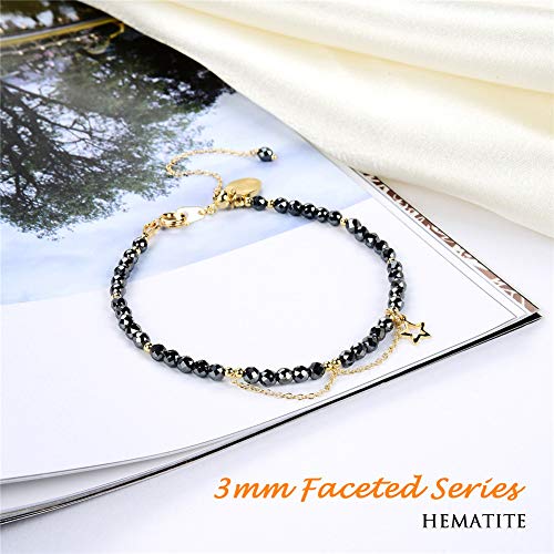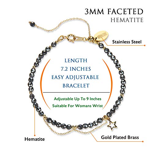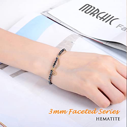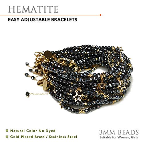Morchic - مورشيك سوار خرز احجار كريمة طبيعية 3 ملم من الهيماتايت للنساء، سلسلة سهلة التعديل 7-9 انش، هدية عيد ميلاد