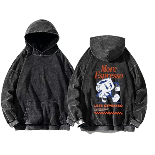 Generic - سترة بقلنسوة مطبوع عليها More Espresso Less Depresso مغسولة