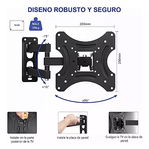 MOREKA - حامل تلفزيون للشاشات ذات المفاصل من 14 إلى 42 بوصة، قاعدة تلفزيون مع 3 أذرع من الصلب المقوى بالكامل، ماكس فيسا 200 × 200 ملم، يحمل حتى 35 كيلوجرام