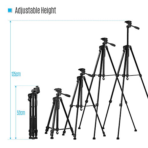 Morelian - حامل ثلاثي القوائم محمول موريليان 135 سم خفيف الوزن للتصوير الفوتوغرافي مصنوع من خليط معدني من الألومنيوم بسعة تحميل 3 كجم كحد أقصى حامل موبايل مع شنطة حمل لكاميرا دي اس ال ار والموبايلات الذكية