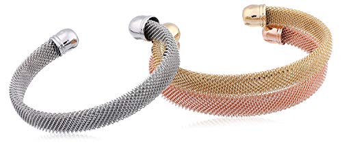 Morgan Jewelry - اسورة فضة مفتوحة شكل شبك مسطح للنساء من مورجان جوليري - 3 قطع