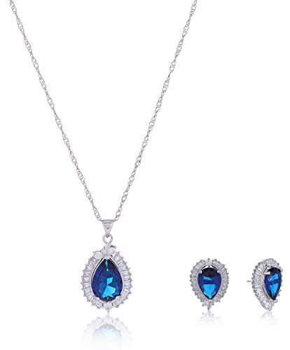 Morgan Jewelry - طقم سلسلة بدلاية دمعة كريستال وحلق مطلي فضة للنساء من مورجان جوليري