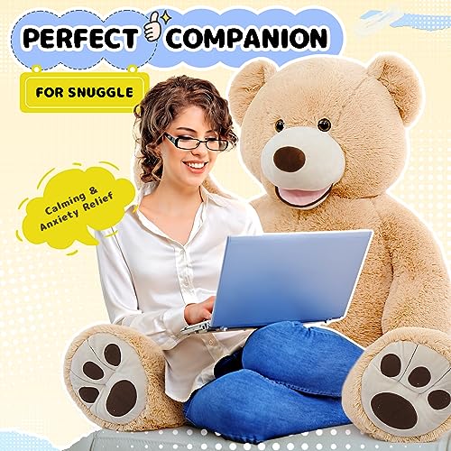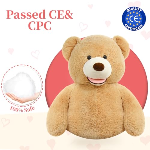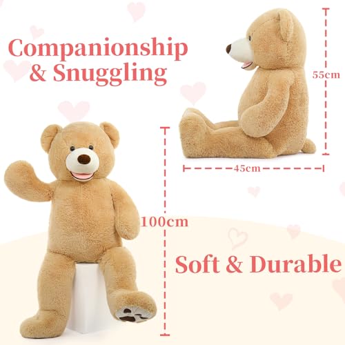 - تصميم فريد: دمية دب كبيرة بطول 100 سم مع وشاح قابل للإزالة، وعيناه بزر ذو طبيعة جيدة، وأنفه وابتسامته الجميلة تجعلها تبدو نابضة بالحياة، وتمنحك ابتسامات مبهجة، وتبدد كل التوتر والقلق