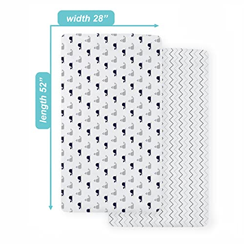 Moro Moro 3 - طقم ملايات سرير أطفال مطبوع من قطن الجيرسيه 100% لمراتب سرير الأطفال القياسية ومراتب الأطفال الصغار للأولاد والبنات من مورو مورو 3، لون كحلي (نمط حوت)/ متعرج، مقاس 71 سم × 1.32 متر (عبوة من قطعتين)