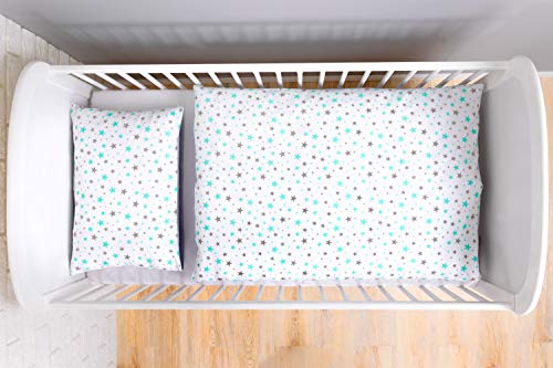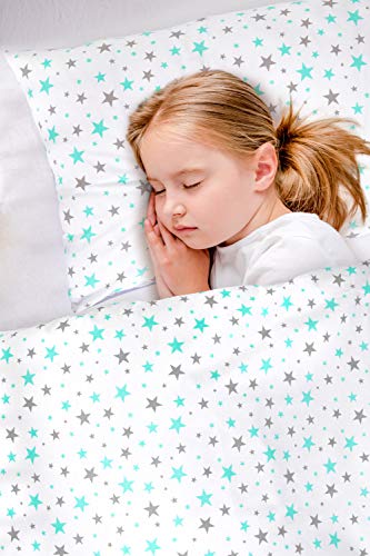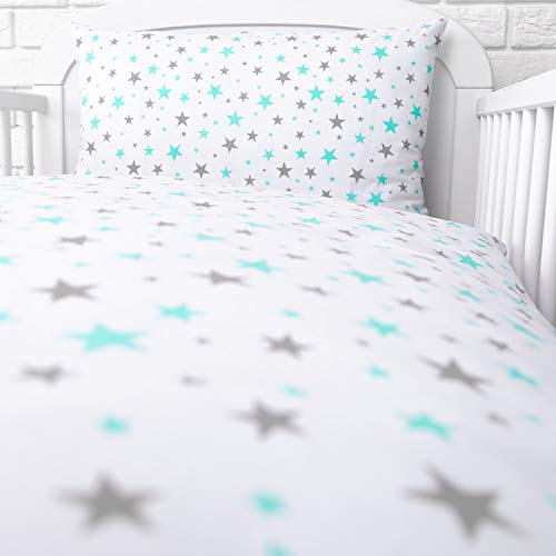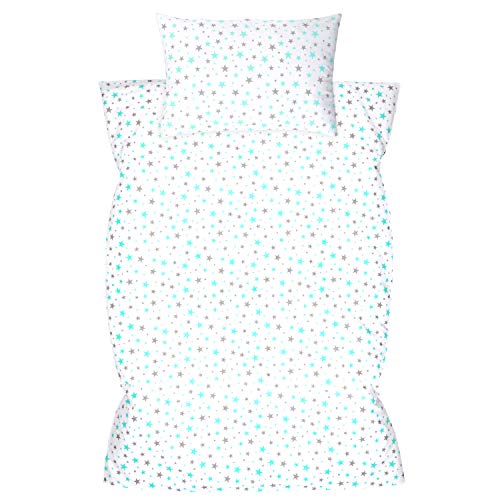 Moro Moro 3 - طقم غطاء لحاف من القطن بنسبة 100% للاطفال الصغار والرضع مورو 3 مكون قطعتين مقاس 100 × 135 سم وسادة: 40 60 لسرير الاطفال وسادة - نجوم تركواز