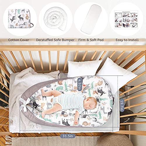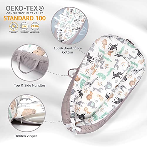 Moro Moro 3 - عش سرير للاطفال حديثي الولادة من مورو اطفال محمول قابل للتعديل القطن جيد التهوية للقيلولة والسفر عمر 0-12 شهر حيوانات .