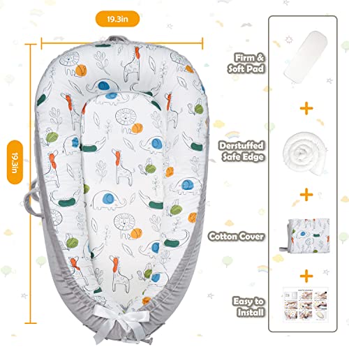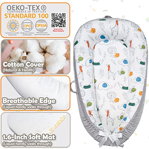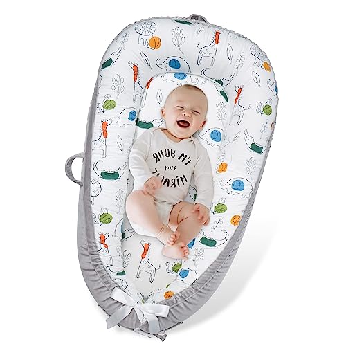 Moro Moro 3 - كرسي استرخاء للاطفال من مورو مصنوع القطن الناعم جيد التهوية لبشرة الطفل الحساسة مقعد قابل للتعديل لوقت البطن واساسيات حديثي الولادة وهدايا استقبال المولود حيوانات ورمادي عدد 1