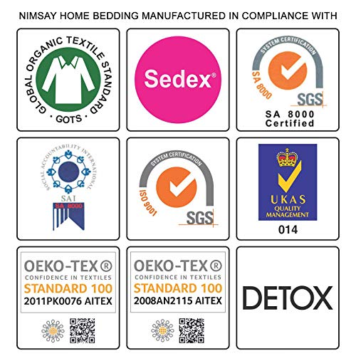 - اشترِ دائمًا بياضات السرير بثقة. تم تصنيع طقم السرير الجميل هذا وفقًا لمعايير اويكو-تكس 100 للسلامة والأخلاقية والصديقة للبيئة. طقم ملاءات السرير من القطن الخالص قابل للغسل في الغسالة ومناسب للتجفيف في المجفف. يمكن غسلها جيدًا وسهلة الكي ومقاومة للبهتان.