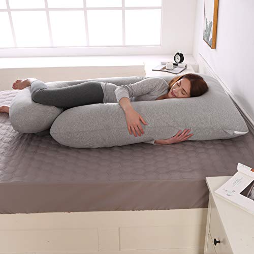 Moro Moro 3 - مخدة حمل لا غنى عنها للحمل من مورو مورو 3، مخدة حمل لدعم كامل الجسم للنساء الحوامل، كيس مخدة جيرسي قابل للغسل مقاس 1.44 متر (لون رمادي فاتح)