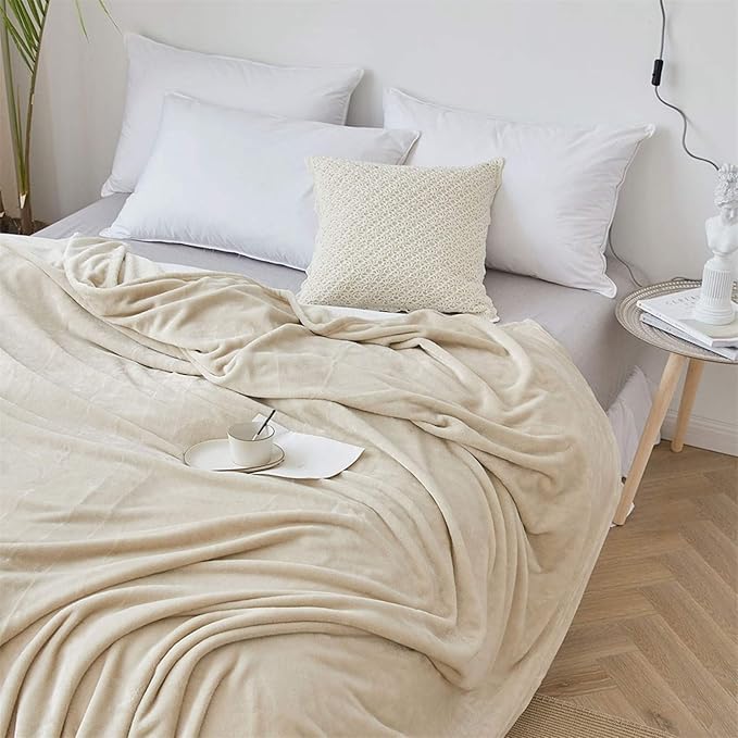 Moro Moro 3 - بطانية مقاس سينجل من صوف بطانية اريكة ناعمة وخفيفة الوزن وفاخرة ـ 130×150 سم، بيج