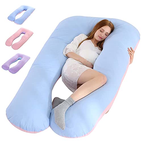 Moro Moro 3 - وسادة دعم للنوم للنساء الحوامل من مورو مصنوعة القطن بنسبة 100% بطبعة ارنب على شكل حرف U وسائد حمل جانبية للحمل اللون: اخضر مزرق .